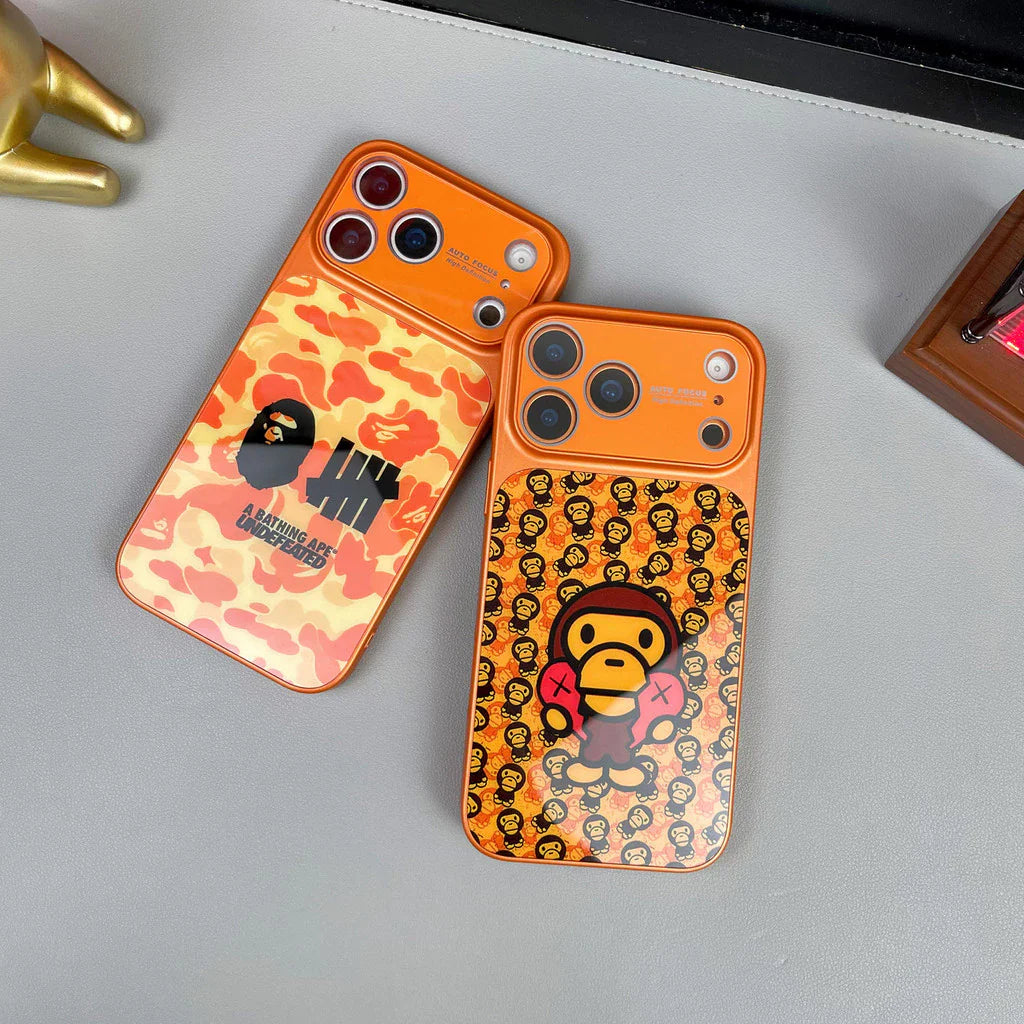 Convierte tu teléfono en un minidiseño urbano. Esta llamativa funda de camuflaje naranja realza al instante tus selfies frente al espejo y fotos planas, con un divertido estampado inspirado en un simio de dibujos animados que parece sacado de una edición limitada.