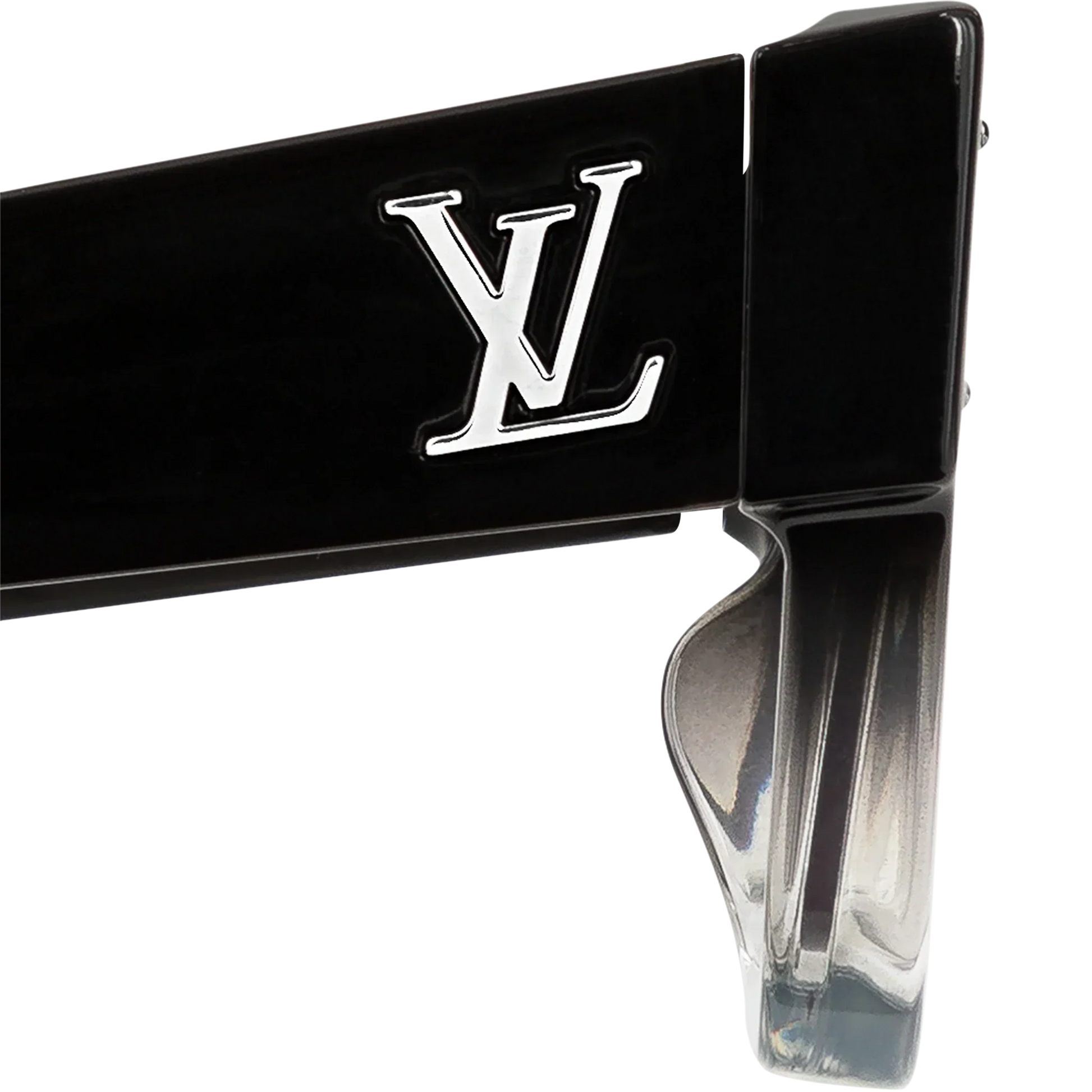 The Cyclone Sunglasses make a bold statement with their modern square shape and deep bevel. This modern design features lenses that are transparent at the bottom, matching the gradient colouring of the frame. A Monogram Flower composed of four crystals sits above the bridge of the glasses, adding a sparkling finish to this architectural piece.