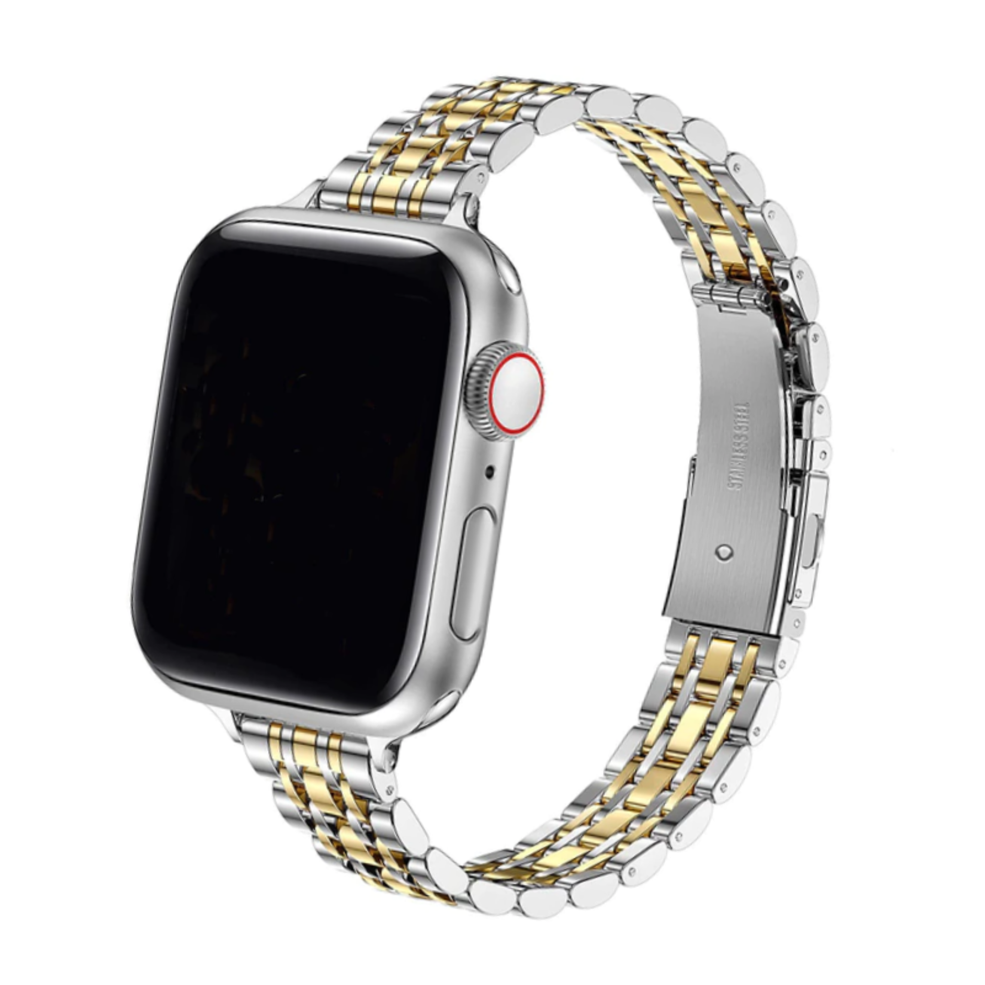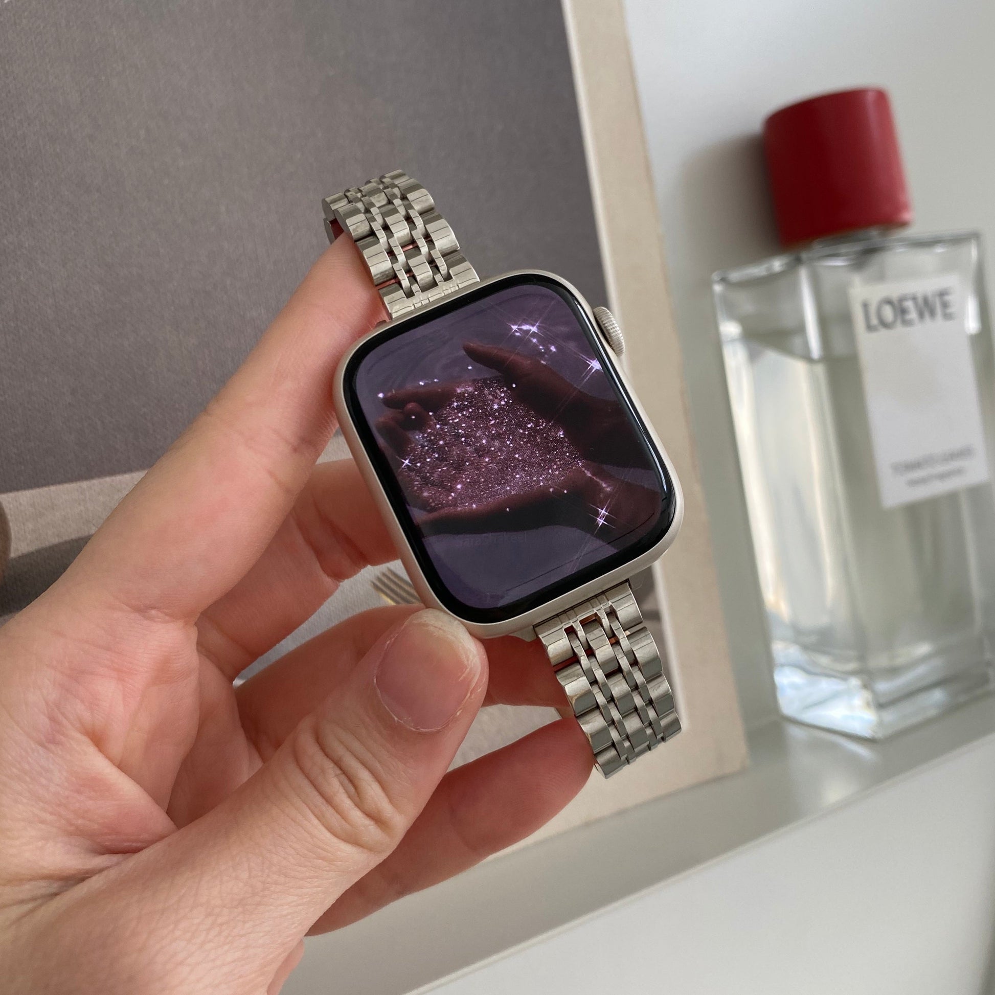This metal link bracelet for your Apple Watch series features a brushed finish that gives it a unique and modern look. It is made from high-quality stainless steel and is both durable and comfortable.