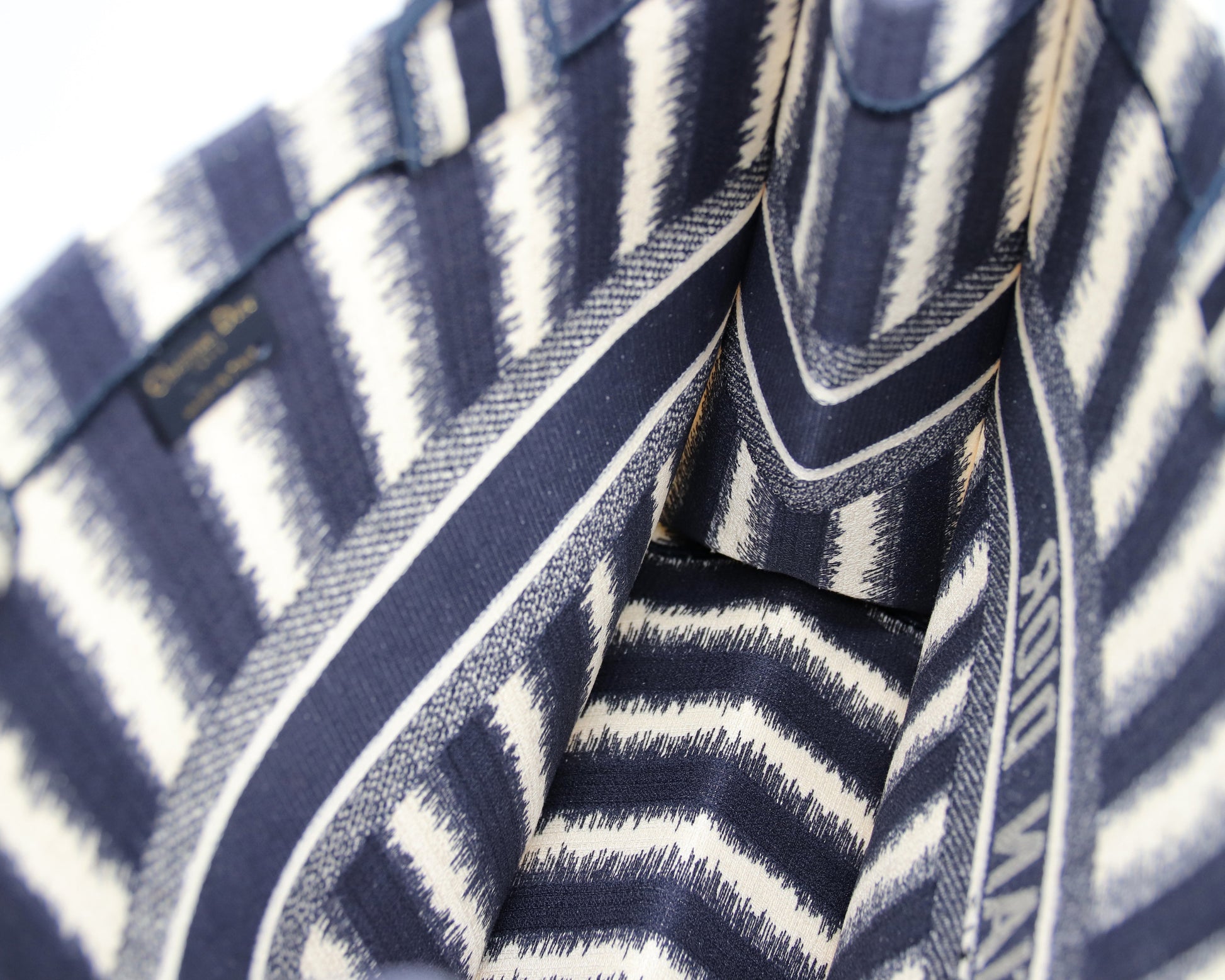 這款大號 Dior Book Tote 手袋是一款超級受歡迎且用途廣泛的包款,既適合日常使用,也是度假旅行、海灘和泳池派對的完美之選。它採用 2021 夏季系列獨有的 D 形條紋刺繡,絕對是令人驚豔的單品。