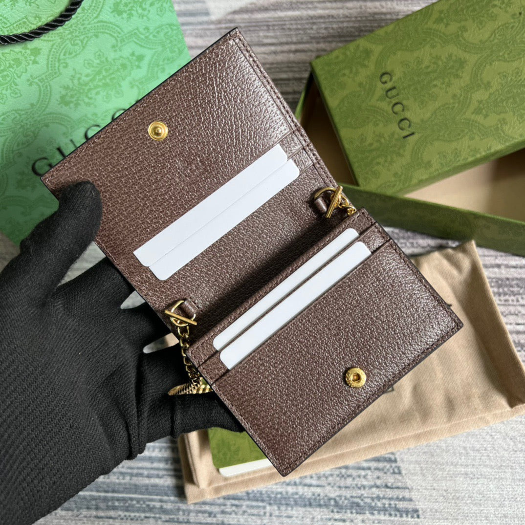 - GG標誌最早於1970年代啟用,是Gucci 20世紀30年代經典菱形圖案的演變,自此成為Gucci品牌傳承的標誌性符號。這款卡包將標誌性GG圖案與織帶結合,這種永恆的組合是對Gucci品牌根源的致敬。
